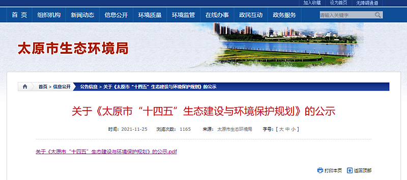 文章來源:地大熱能 發布作者:太原市生態環境局 發表時間:2021-12-22 08:45:06瀏覽次數:3600