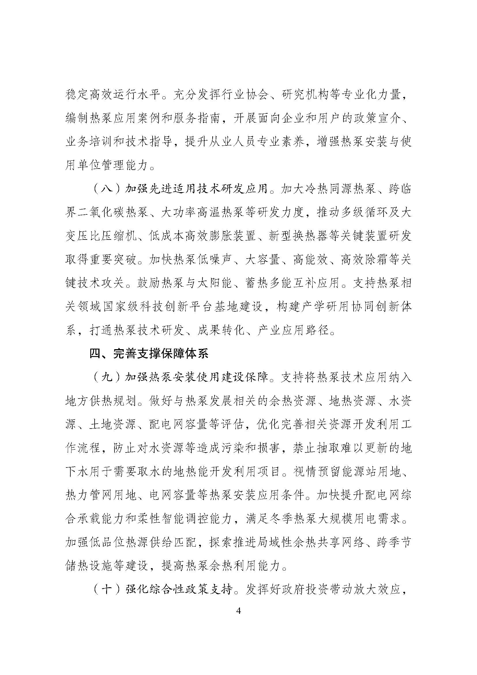 經過各方共同努力,力爭到2030年,熱泵生產制造和技術研發能力不斷增強,重點熱泵產品能效水平提升20%以上,大功率高溫熱泵、高效壓縮機、新型制冷劑等核心技術取得突破,熱泵建筑應用面積和熱泵機組裝機容量持續增長,熱泵產業高質量發展水平顯著提升,國際競爭優勢不斷擴大。