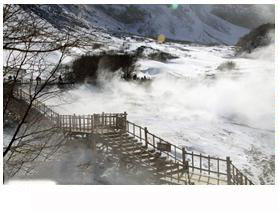 | 聚龍泉位于長白山北坡,大約距長白瀑布900米的地方,在10Cm平方米的地域,有30多眼泉水噴涌而出,經(jīng)科學(xué)工作者測定,水溫最高可達(dá)82℃。這里,不論冬夏,總是熱氣蒸騰,霧氣繚繞,特別是嚴(yán)寒的冬季,在皚皚白雪的襯托下,溫泉更是云遮霧障,猶如神秘的仙境。溫泉附近長年沉淀下來的礦物質(zhì),有紅、褚、黃、青、綠等等顏色,好似美麗的陶瓷。一種清淡的硫磺味在空氣中飄浮。還有珍珠似的氣泡冒出水面,吐出開鍋似的聲音。 如果細(xì)心觀察,溫泉附近的草還是鮮活翠綠的!只要游人高興,還可以在大雪紛飛中露天野浴,實在是妙趣橫生。 |