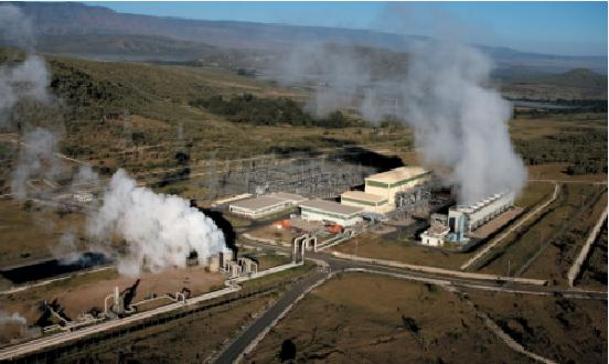 肯尼亞奧爾卡利亞地熱田的勘探工作開始于1970年,1982年建成第一座15兆瓦的電廠,也是整個非洲的第一個地熱工程。1999年總裝機容量為45兆瓦,2004年增至129兆瓦。2012年由肯尼亞政府,肯尼亞發電公司等出自建立的心的地熱發電站將會是非洲最大的地熱發電站,而且還會使奧爾卡利亞發電機的容量翻三番。并且這個工程將會使肯尼更(KenGen)的綠色發電來源增加到百分之八十以上。