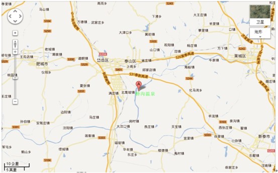 山東省泰安市橋溝溫泉水質良好,含有偏硅酸、鍶、鐵、氡、氟等20余種對人體有益物質,經省地礦廳多次提樣化驗證明,重要指標達到醫療礦泉水和天然礦泉水標準。此處環境優美,北倚泰山,南靠徂徠山,大汶河環繞,依山傍水,不僅交通方便,而且電力充足,具有極大的開發價值。